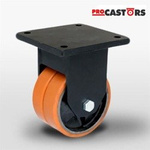 Kółko transportowe stałe 800 kg nośność. Koło do dużych obciążeń. Mocne i wytrzymałe koło żeliwne z bieżnikiem poliuretanowym. Obudowa z grubej blachy ocynkowanej o wzmacnianej konstrukcji. Udźwig 1000 kg (3000 kg na czterech kołach). Do wózków platform