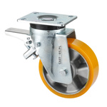 Kółko transportowe do dużych obciążeń. 800 kg 200mm Koło obrotowe z hamulcem aluminiowe z opaską poliuretanową. Nośność 800 kg (2400 kg na czterech identycznych kołach). Do wózków transportowych, magazynowych, platform i konstrukcji stalowych